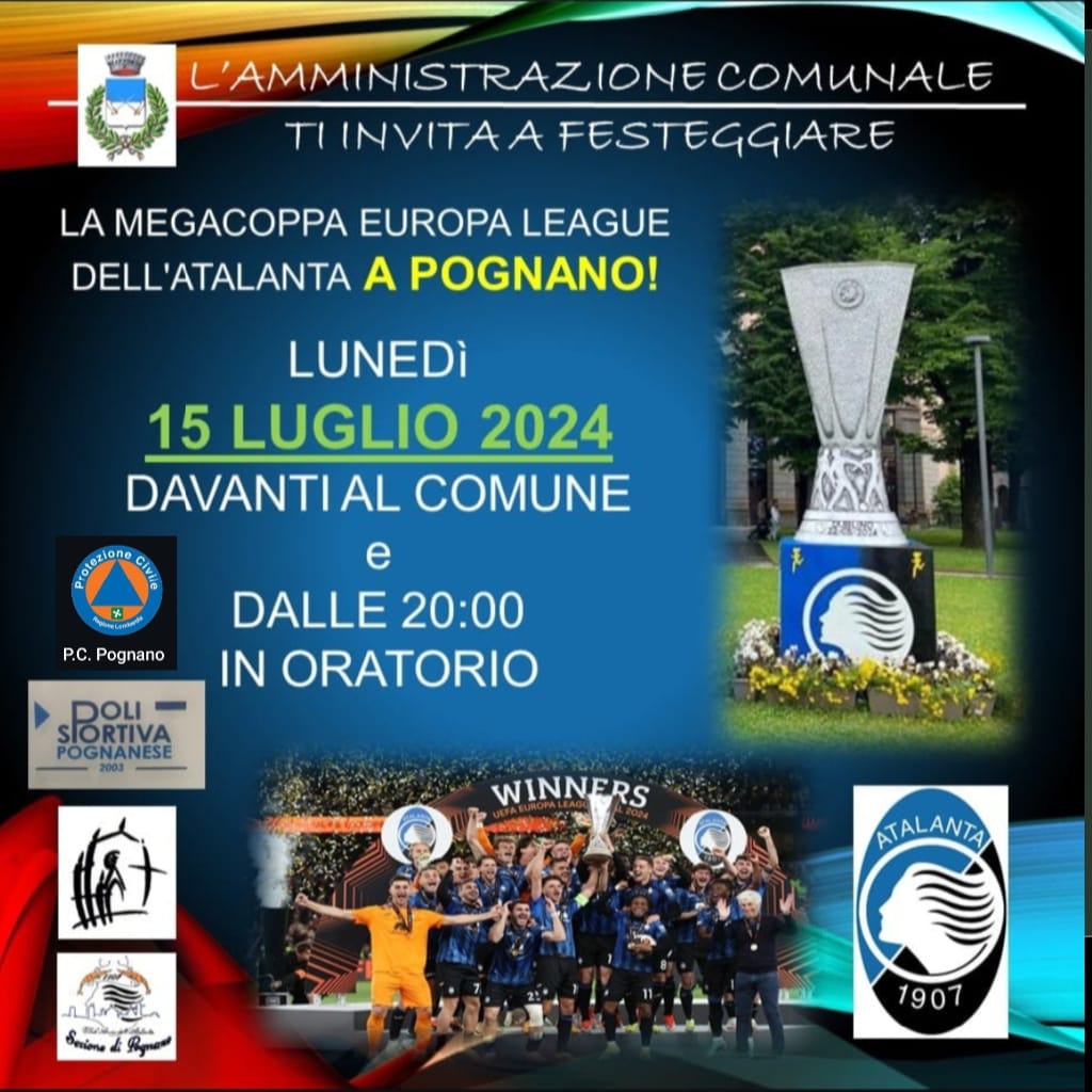 L'Amministrazione Comunale ti invita a festeggiare la megacoppa Europa League dell'Atalanta a Pognano!